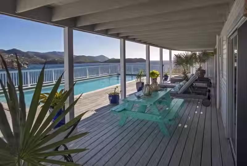 Hart Bay Great House is located on the southwest end of Hart Bay. This four bedroom three and a half bath beachfront villa is a perfect villa for newlyweds, families, and small groups. Convenient to the main town of Cruz Bay, where you will find shopping, dining and the road to the famous North Shore beaches of the National Parks. Hart Bay Great House is located on Hart Bay beach.